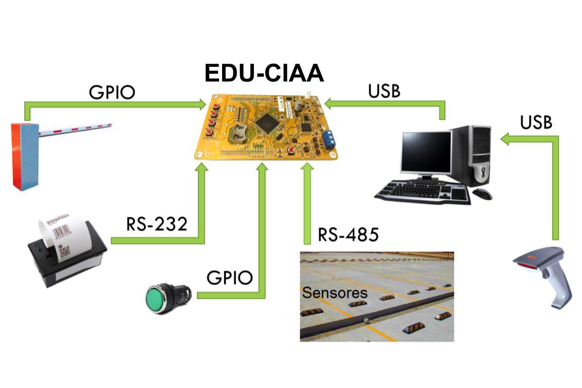 El sistema controla la barrera de acceso, las entradas y las salidas vehiculares, lee y emite los tickets, y registra todo los movimientos en una base de datos.